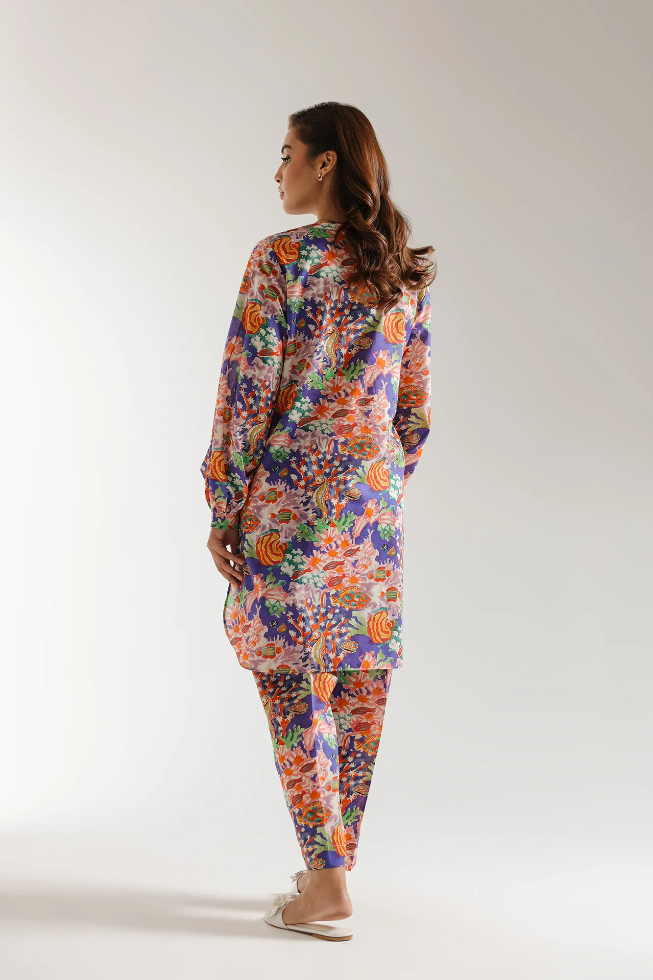 A contemporary composition is layered on this trendy silhouette shirt beautifully adorned with captivating artistic prints in vibrant colors portrayed on a mesmerizing lavender blue canvas. Paired with a matching trouser, this style statement outfit is a perfect option for you to embrace this summer season.