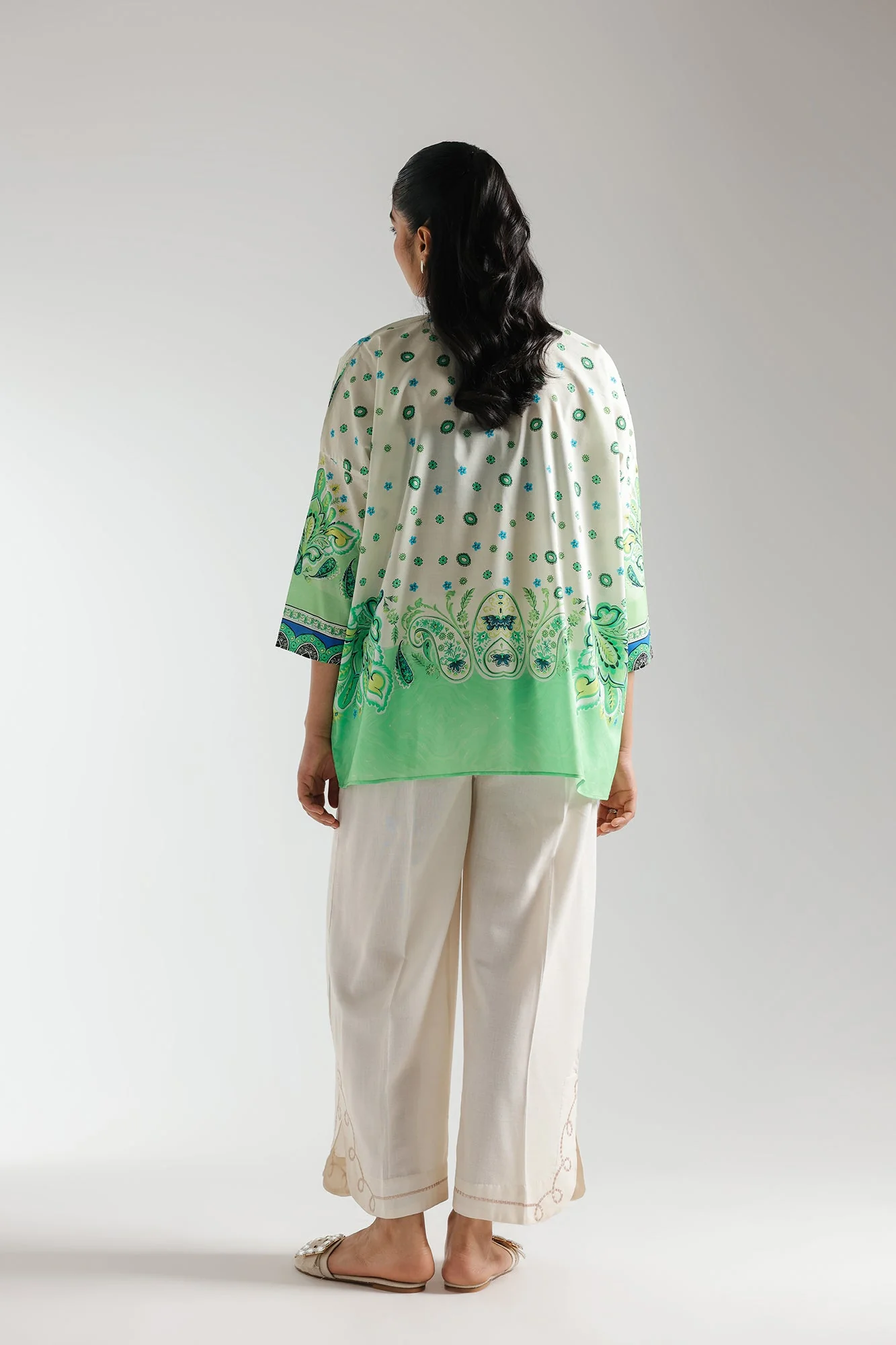 A classically chic design is portrayed on this elegant kurti rendered in a pale yellow shade. It features fascinating abstract designs printed in vibrant colors illustrating an artistic composition in luscious shades of green. Style this contemporary kurti at fun events and be the epitome of grace this season.